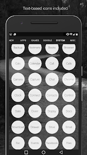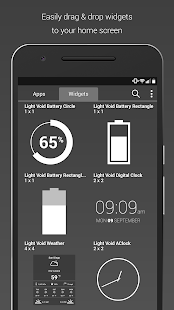 Light Void (pro version) is a simple, clean, minimal and flat icon, matching wallpapers and widgets for clocks, drums and weather. The icon centers are transparent, creating a window in the background behind them. The center of the hollow icons changes with what is behind it, which makes the whole display blend very well. Widgets provide customization of color, size and font and selected wallpapers of sky, clouds and landscapes are included.