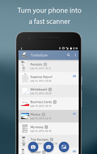TurboScan uses advanced fast algorithms to accurately detect edges of documents, straighten documents (correct perspective), eliminate shadows and define perfect contrast – black on white.