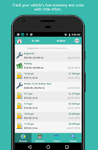 – Gas mileage calculation (i.e. fuel economy or fuel consumption) with support for multiple units: MPG, gal/100mi, mi/L, km/gal, L/100km, km/L