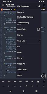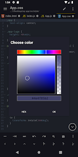 Acode is a lightweight and powerful code editor and web IDE for Android. You can use this editor to edit HTML, JavaScript, text. You can create a website, run the website in the browser, and view errors or logs in the console.