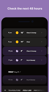 Appy Weather is the most personal weather app because it was designed for humans by someone who also checks the weather. Summarizing the weather in simple, user-friendly language via its unique timeline screen, Appy Weather stands out from all other weather apps – plus long drop-down lists for understanding the weather as it is now summarized for you in a few lines and makes checking the weather fast, easy and really fun!