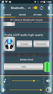 The “Bluetooth Audio Widget Battery” app allows you to listen to music and audio files on all Bluetooth audio devices, even those that usually do not allow it, such as those that only work during calls. You can also use it to hear AIDS and some car radios.
