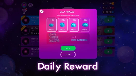 In Dancing Road Mod APK – Now you can play ball dancing on the road music tiles with a variety of popular genres including the greatest rhythm piano to guitar tunes, Pop, Kpop, Hip Hop, Rock and EDM.Dancing Road is a game where players will spend their time completing different songs providing different fun. The gameplay that players will experience is completely accessible, but there will always be challenges that you will take your time to overcome. At the same time, with a wide variety of songs, you will spend time unlocking the songs you find interesting. You will surely want to get the best results for each level.
