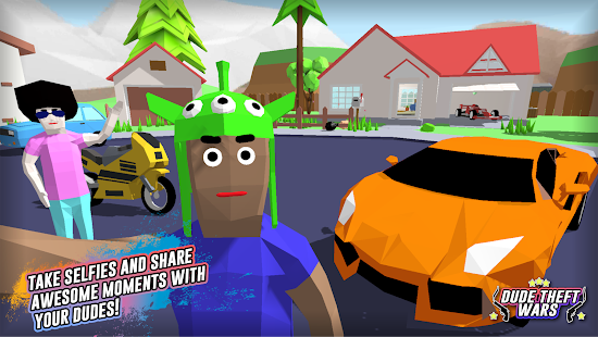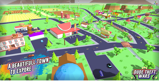 Dude Theft Wars mainly emphasizes the online mode, where all players can meet and start pointless but humorous battles. If gamers are playing with friends, this game is the endless source of entertainment that everyone needs. The game world is developed with a huge map and without any rules. The only ones who cause problems for the players are the police on the scene. But it gets more fun and awesome when the player can riot and drag the police into the fun. The gameplay is always expanding and evolving in this game, and players can enjoy doing whatever they want and accompanying their friends through the silliest yet funniest events.