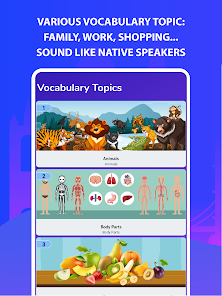English Vocabulary is a utility app that provides thousands of English vocabulary words with additional pictures, helping you start learning English. This application will be a perfect choice for those who are just starting to learn English or who want to improve their level. . Provide a huge vocabulary store as well as 38 smart e-English books to help you learn the best. The vocabulary will be accompanied by illustrations so that you can easily visualize and remember them better. Moreover, the application also allows to automatically adjust the level from basic to advanced according to the needs of each one. Each word will be illustrated with pictures to help you remember better.