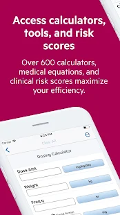 * Over 600 dosing calculators, medical equations and tools