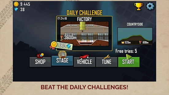 Hill Climb Racing An exciting and entertaining physics-based racing game made on Android! Meet Newton Bill, an ambitious young uphill runner. He was about to take a trip that would take him to a place where no one had traveled before. Ignoring the law of physics, Newton Bill does not calm down before having conquered the highest hills of the moon! Overcome the test in 4 unique conditions to climb the hill. Earn a bonus for a daring stunt and collect coins to improve your car and reach even higher heights. But beware, Bill’s thick neck is already quite weak! And in his good old car, gasoline can easily end. Experience the adrenaline of high-speed climbing * and unique landscapes while driving a variety of cars. Get bonuses for making dangerous tricks and collecting coins to pump your car and reach even higher heights. Be careful though: with his powerful neck, Bill is no longer the same boy he once was, but the fuel can quickly end up in his good old gas crematorium!