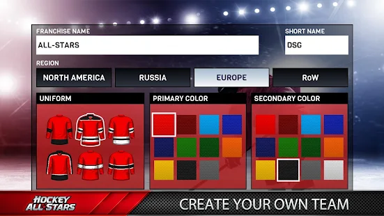 Create your own hockey franchise, build a team of All Star players and compete against the best teams from around the world to make your way through the leagues and claim the silverware.