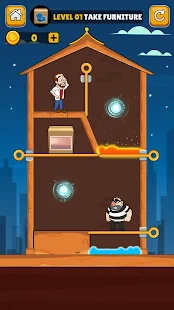 Home Pin Pull Him Out – How to loot? – addicting puzzle game with popular gameplay and good graphics. The user will help the main hero to save his wife in various places from thieves, monsters and other dangers. For the tasks the player must remove the partitions in order to neutralize the opponents and eliminate the trap. Successful leveling will allow you to access new characters and unlock more stages.