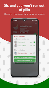 Medica reminds you to take the right medication at the right time, and also to refill your stock of pills before they run out. Take advantage of the smart medication reminder with flexible schedule options, pill tracking, refill reminder, etc.