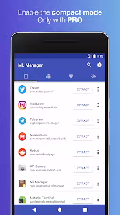 ML Manager Pro is a customizable APK manager for Android with root access: extract any installed application, mark them as favorites, share .apk files easily and much more.