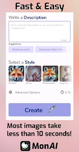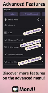A picture is worth a thousand words, but what if you could turn your photos into captivating works of art? MonAI has you covered. Start with a photo or maybe a sketch, and let the AI guide you to an exceptional creation. The negative prompts feature also allows precise control over your images by removing unwanted elements. How about creating a custom wallpaper for your smartphone? Or maybe you want a stunning landscape for your desktop? With money, you can choose from different image sizes, customizing your art to meet your unique needs. And to top it off, there’s an ever-expanding rostthere’sI template to explore – all the latest and greatest AI art technology, right at your fingertips.