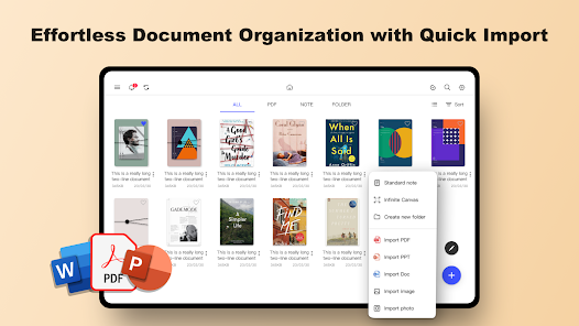 Welcome to Note in your ultimate note-taking app designed to fuel your creativity and boost your productivity. Effortlessly capture, organize and express your ideas with our comprehensive toolkit. Turn your device into a versatile PDF reader with highlighted annotations and even word search. Edit plans and add comments to your PDFs. Split or merge PDFs effortlessly and automatically generate editable PDFs from your notes. With Notein, you don’t just take notes; you improve your note-taking game. Zoom up to 1000% for greater precision, use customizable brushes for artistic writing, and leverage features like zoom tracking and outline view for optimal organization. Experience the smooth loading speed and intuitive interface that make Notein a pleasure to use. Whether you’re a professional student or a creative enthusiast, Notein is your all-in-one note-taking companion.