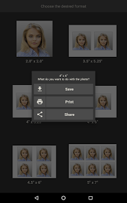 Passport Photo pro provides options to save photos in formats required by different countries/agencies. Common formats like JPEG, PNG are available. Sizes for US, UK, Canada, India passports and others can be selected with a single tap.