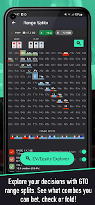 Poker Solver+ – GTO Lookup For No Limit Holdem is a pig card lookup app for poker enthusiasts to look for deck analysis. Poker Solver+ is a great solution for those who have a passion for poker. In order to help players have the most enjoyable gaming time, the app was invented to allow players to accurately analyze hand directions. Players will receive the most detailed steps to eliminate incorrect strategies. In fact, through this app, players can win matches by up to 99% and help you earn more money in your pocket or even become the best poker tycoon. Thanks to this application, playing poker for players will become too easy. In just a few seconds, you have completed a hand and collected a large amount of money in this casino. Encrypted by the AI solver, players will have an exciting poker experience. Players can also use your private post-flop GTO search assistant for more solutions.