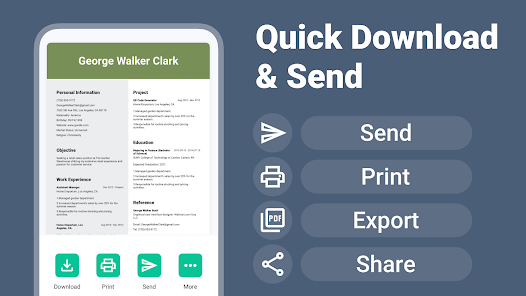 Once you have edited and added your personal information in Resume Builder & CV Maker, you can export them as PDF files clearly and accurately. To ensure accuracy, you should check and preview that resume before exporting it. Please review the information as carefully as possible. Plus, you can send that resume to the hiring manager’s email faster and more efficiently than ever. Everyone has their own creativity and CV writing style. Check out this app to create a resume with the most guaranteed and impressive content. Recommend it to friends and family so they can use it and receive the benefits it brings.