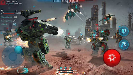 Wide variety of robots with unique capabilities. Jump on buildings, maneuver from cover to cover, hide behind shields or infiltrate enemy lines invisibly – play as you always wanted! You will also get a bunch of robots for free just by progressing!