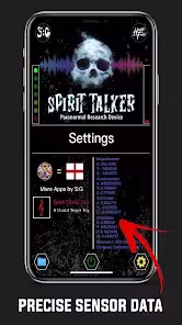 Spirit Talker Mod Apk – Communicate with the unknown. Discover words and voices using your phone’s sensors during paranormal investigations. Easy navigation and user-friendly design are key features of this game. Upon detecting an answer, the app presents the words visually in a text box accompanied by audible speech. When your paranormal session ends, a simple click of the stop button ends your interaction. Additionally, a folder button allows users to retrospectively explore the responses received during their session. However, this function is only accessible when the scanner has stopped, adding a practical touch to the game’s design.