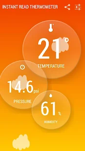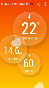 Thermometer – Premium uses the phone’s temperature sensor to measure instantaneous temperature. It gives the temperature in real time with frequent updates. If the device does not have a temperature sensor, temperature updates are provided through the web service. The colors indicate the air temperature. The temperature values are displayed in the color that indicates the current temperature value. Thermometer app is useful for measuring room temperature if your device supports temperature sensor.