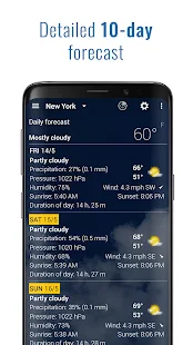 Transparent Clock and Weather – this is a great application for Android, which has a wide functionality to track weather conditions on a smartphone or tablet. In addition to detailed forecasts, the indicator displays the current time and date if the user for some reason runs out of hours on the top panel. Easily get accurate local or global weather forecasts with live weather updates, hourly and daily forecasts and timely weather alerts. Check the weather for today, tomorrow or the weekend with our easy to use weather app.