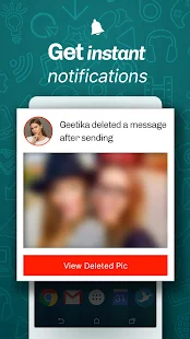 WhatsDeleted is a utility that will help you recover deleted messages by scanning your notifications. With this app, you can not only recover text messages, but also all multimedia attachments (pictures, videos, voice notes, audio, animated gifs and stickers)!