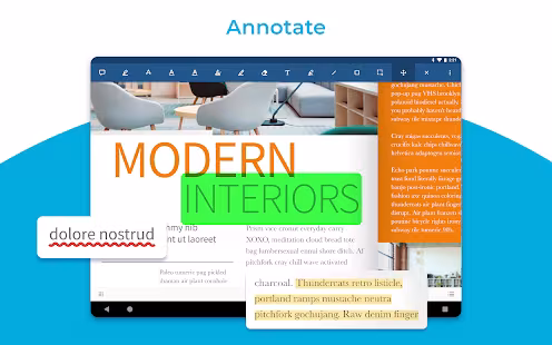 Xodo is an all-in-one PDF reader and PDF annotator / editor. With Xodo, you can read, annotate, sign and share PDFs and fill out PDF forms, as well as synchronization with Google Drive, Dropbox and OneDrive.